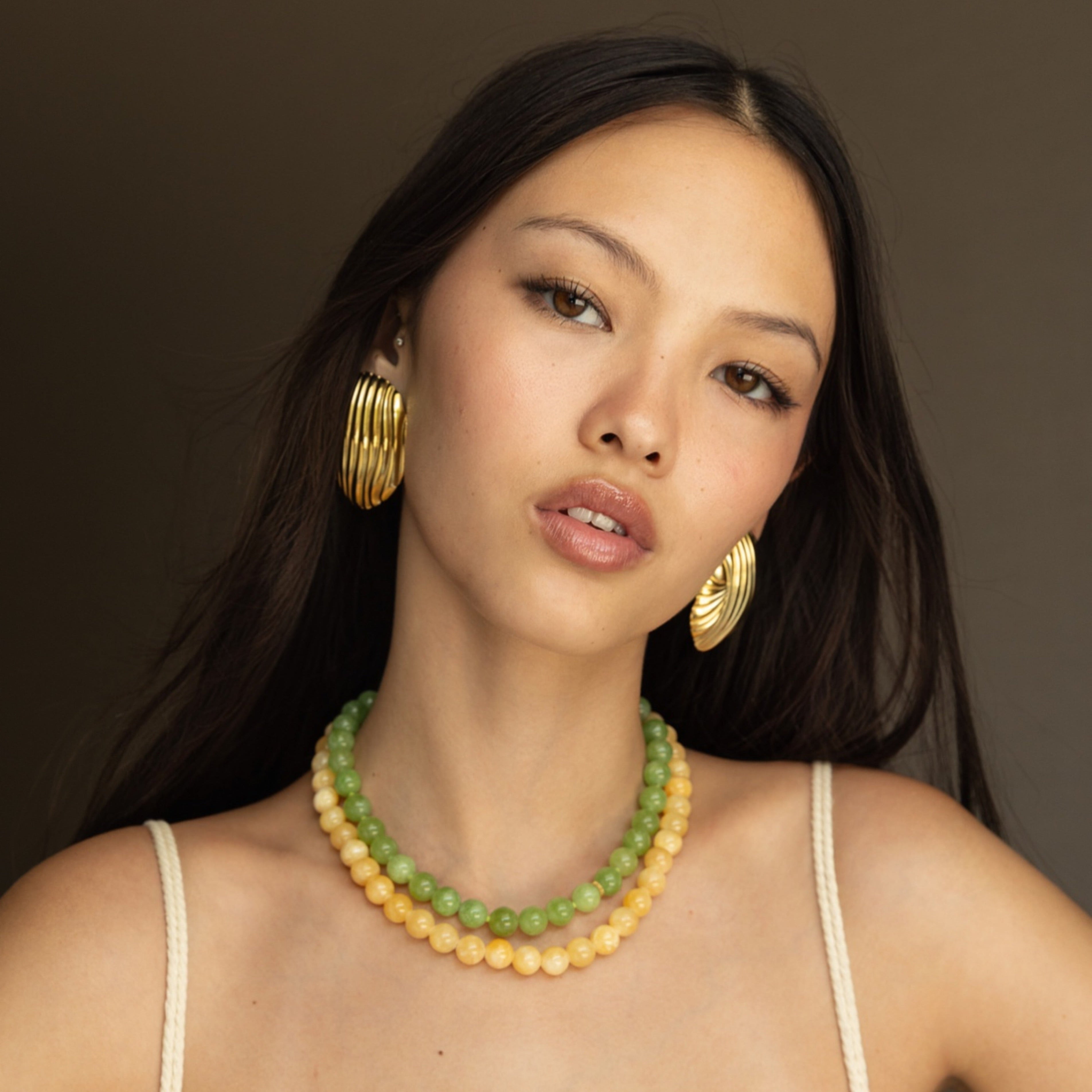 DESCRIPTION:Stone necklace featuring smooth, high-shine green beads in vibrant jade tone for everyday wear —Perfect for a fun, vibrant touch.