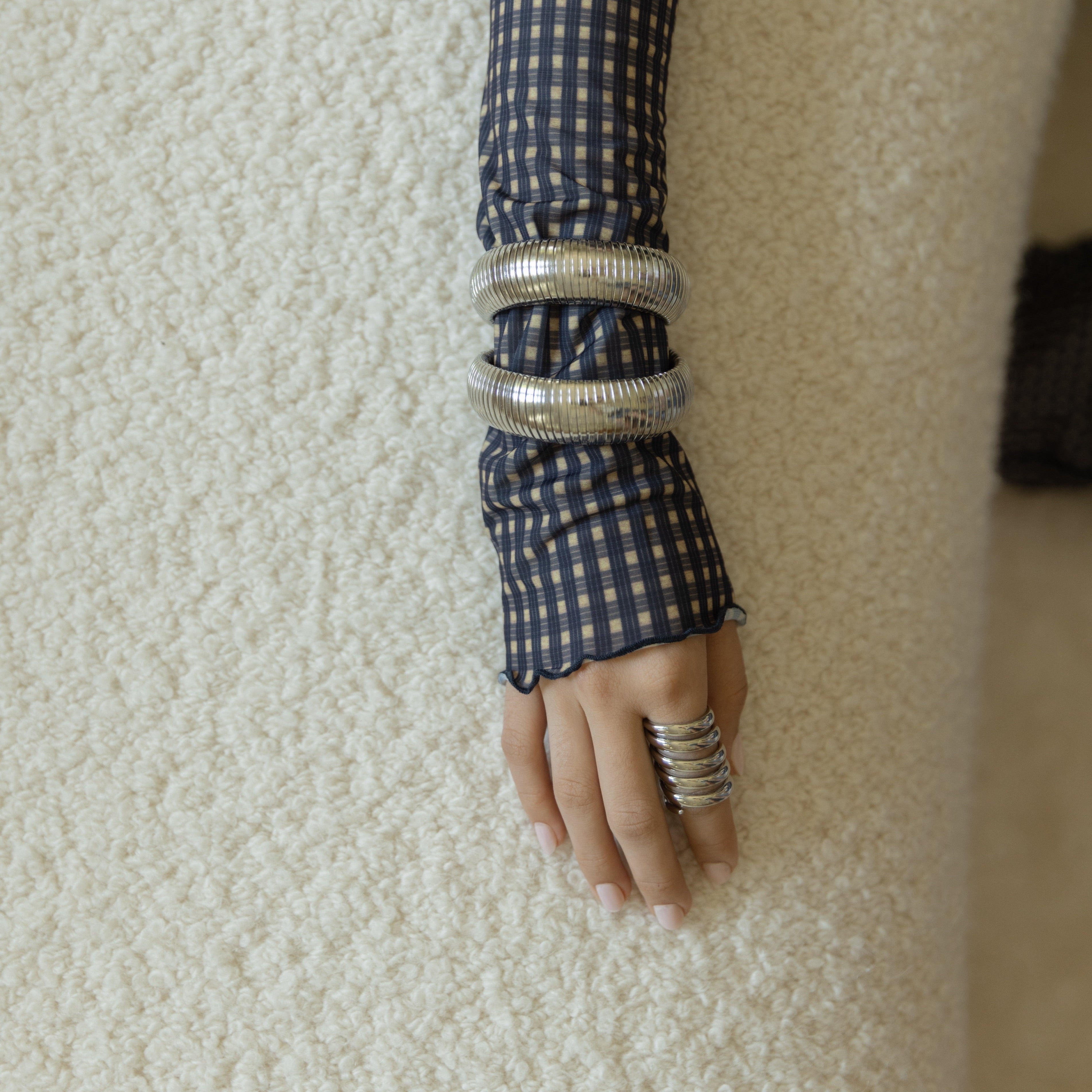 DETAILS:HypoallergenicSilver over stainless steel1.4cmx .07cm