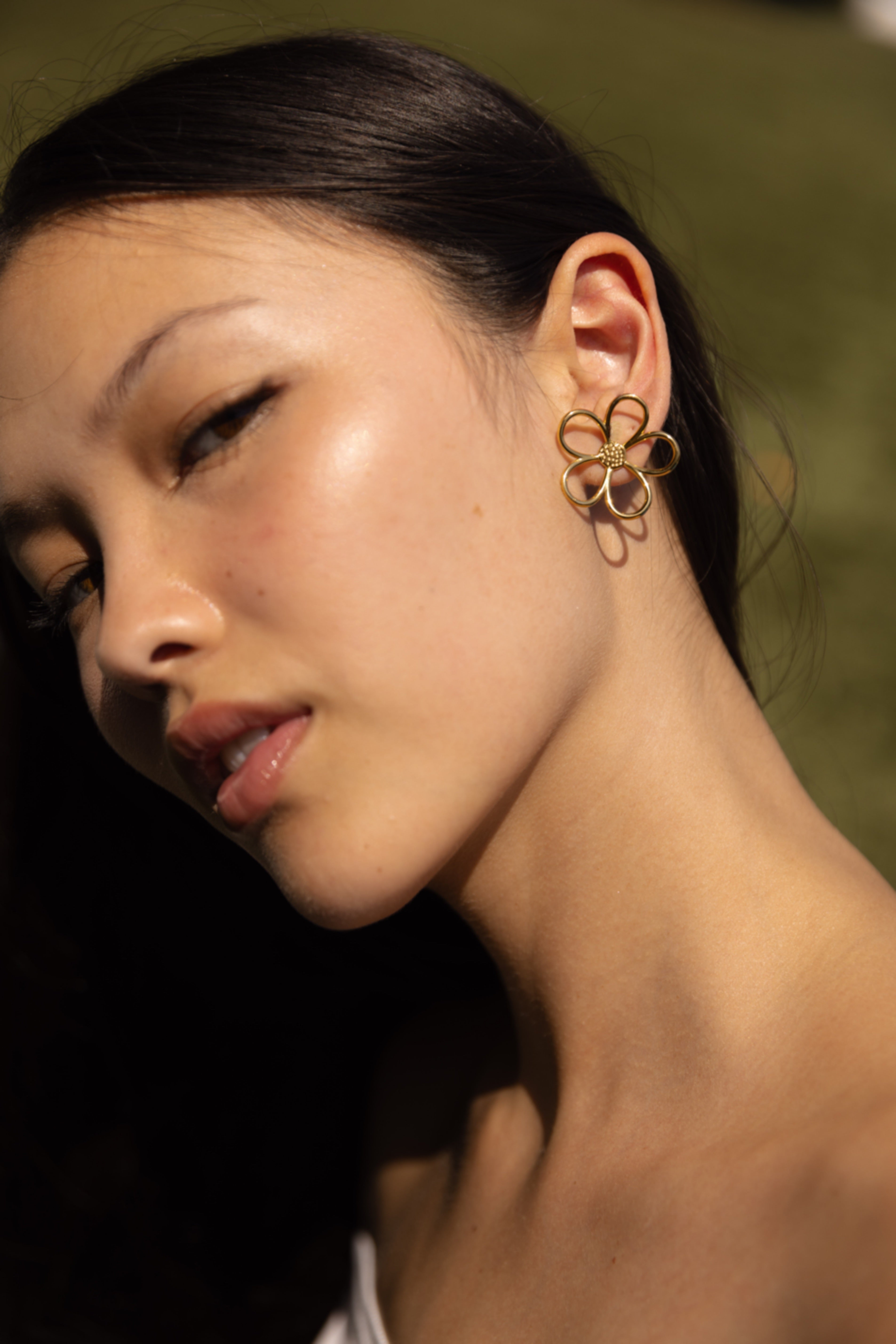 DESCRIPTION:Light-weight gold flower shaped earring for an every day look